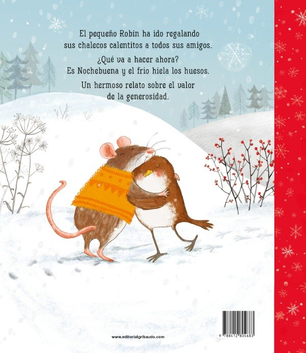 El pequeño Robin ha ido regalando sus chalecos calentitos a todos sus amigos. Pero es Nochebuena y el frío hiela los huesos. ¿Qué va a hacer ahora? Un relato precioso sobre el valor de la generosidad.