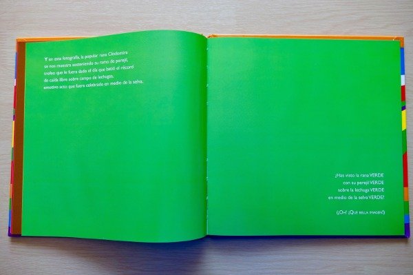 Si mirás con atención, vas a encontrarte con la historia de la frutilla entre los tomates rojos frenada por el semáforo en rojo, o el canario en el desierto, bajo el sol amarillo, pensando en un limón