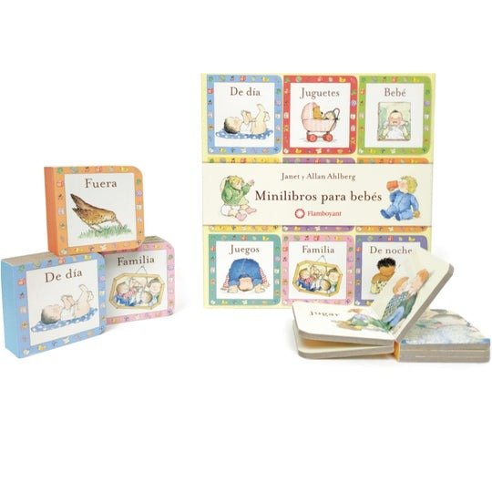 Caja regalo con nueve minilibros para bebés. Hay uno para cada momento del día: “De día”, “Juguetes”, “Bebé”, “Juegos”, “Familia”,“De noche”… Descubre cuál es su favorito.