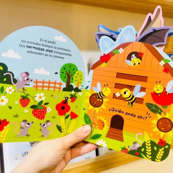 Esta serie de libros sonoros deslumbrará a los niños con sus ilustraciones coloridas y sonidos únicos para jugar a las escondidas y descubrir a los animales. Al tirar de las orejas o colas que sobresalen del libro, los niños podrán descubrir de qué animal se trata y cuál es su sonido correspondiente. Accesorio: Sonoro Incluye traba de sonido