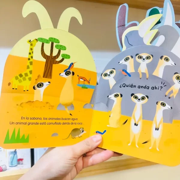 Esta serie de libros sonoros deslumbrará a los niños con sus ilustraciones coloridas y sonidos únicos para jugar a las escondidas y descubrir a los animales. Al tirar de las orejas o colas que sobresalen del libro, los niños podrán descubrir de qué animal se trata y cuál es su sonido correspondiente.