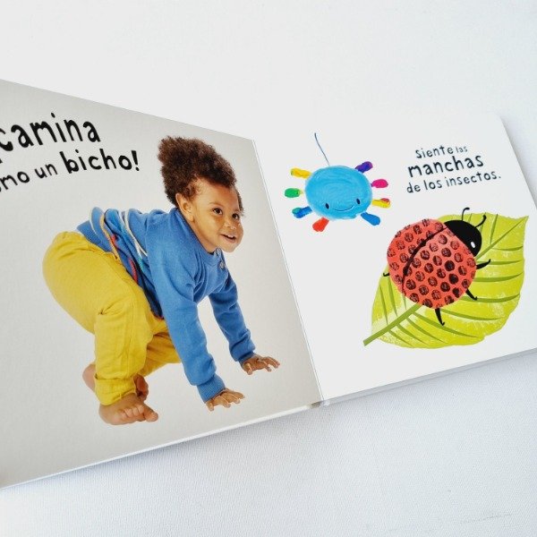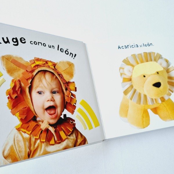 Este libro fue pensado para que bebés y mayores compartan todo lo que hay por ver, tocar y sentir en sus páginas. Cada actividad, apoyada con simpáticos animales, estimula sus sentidos y lo anima a interactuar con imágenes llenas de colores, texturas, sonidos y sorpresas. • Un libro estimulante para familiarizar a los más pequeños con las texturas y sonidos.