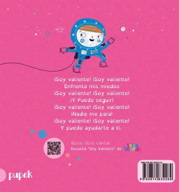 Cada vez que vengan los miedos/ Cada vez que acudan a mí/ Cada vez que tiemblen las piernas/ Cada vez, recordaré: “¡Soy valiente!”. “Soy valiente” es un libro canción de Elisa López Oroño, ilustrado por Mey. Pertenece al disco del mismo nombre del grupo Valor Vereda. En este libro, una simpática protagonista nos muestra sus miedos en distintas escenas y situaciones y cómo los enfrenta con gracia y valentía. Como dicen los integrantes de Valor Vereda, “Los valientes no son los que no tienen miedos, sino quienes se animan a enfrentarlos.” Una gran herramienta para trabajar la educación emocional con niños y niñas a través de la música, la ilustración y la poesía. Incluye acordes y el código QR para poder escuchar la canción.